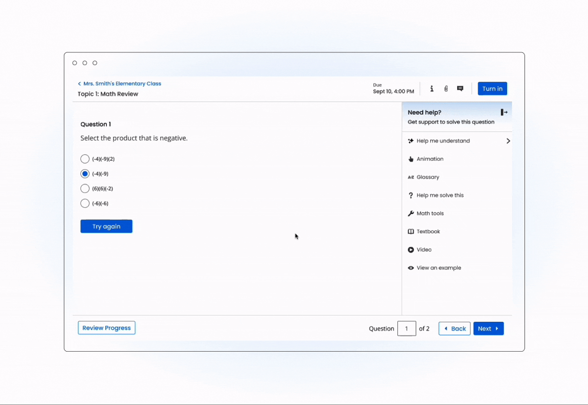 Redesigned the question help experience to include AI-powdered math tutor and built a detailed insights view for teachers to review student interacts with Math AI Tutor, including which questions they received help on and summaries of those interactions.